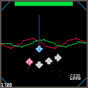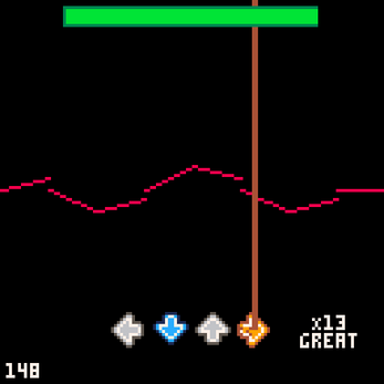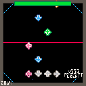 This is a low-res 4 key rhythm game inspired by games such as Stepmania & DDR.